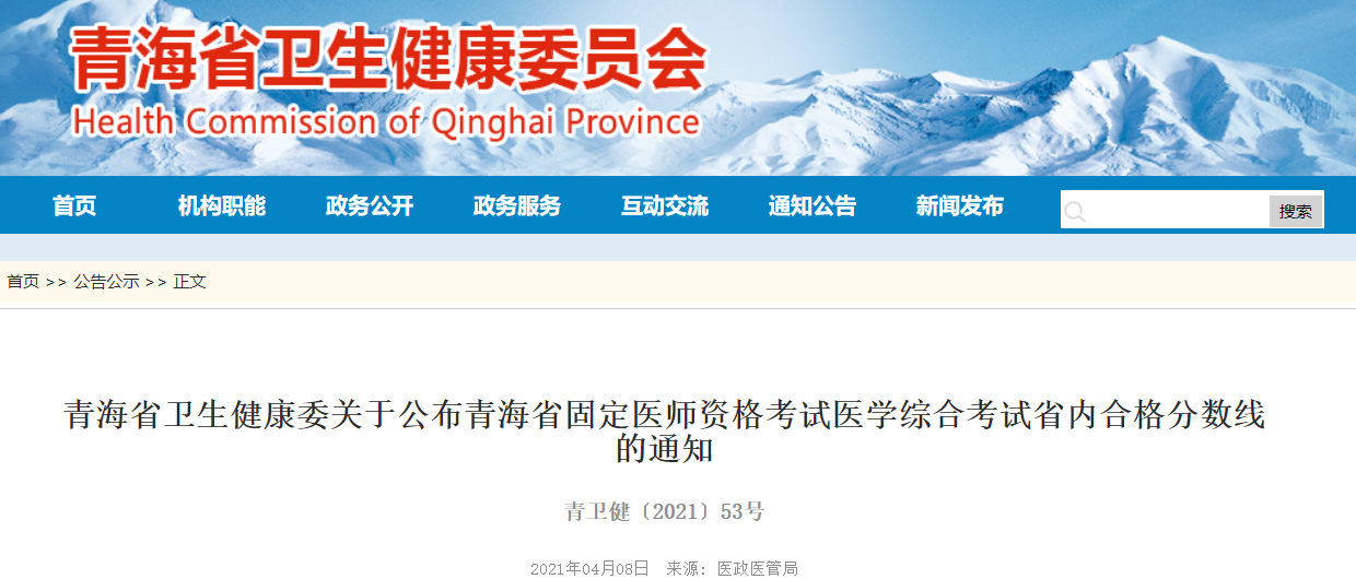 近日,青海卫健委公布《关于公布青海省固定医师资格考试医学综合考试省内合格分数线的通知》(以下简称《通知》),自2021年起,青海省医师资格考试医学综合考试省内合格分数线不再每年浮动,采取固定合格分数线形式。
