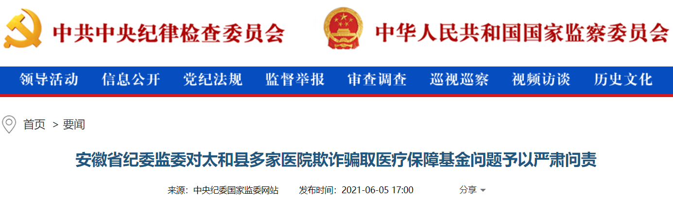 近日,中央纪委国家监委网站分别在6月5日、6日连发两文,将向全国通报安徽省查处太和县欺诈骗保案。