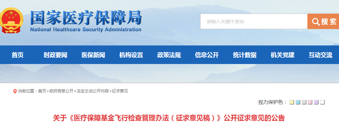 近日,国家医保局研究起草了《医疗保障基金飞行检查管理办法(征求意见稿)》,现向社会公开征求意见。意见反馈截止时间为2021年12月14日。