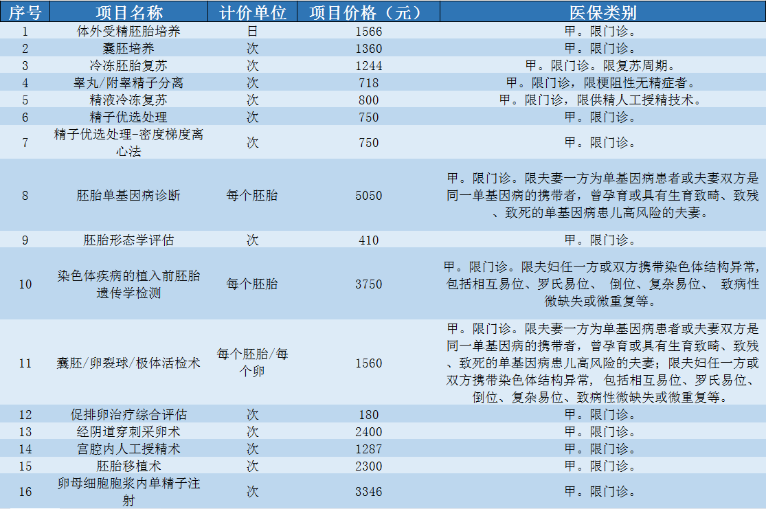 近日,北京市医疗保障局发文,率先将门诊治疗中常见的宫腔内人工授精术、胚胎移植术、精子优选处理等16项涉及人群广、诊疗必需、技术成熟、安全可靠的辅助生殖技术项目纳入医保甲类报销范围。